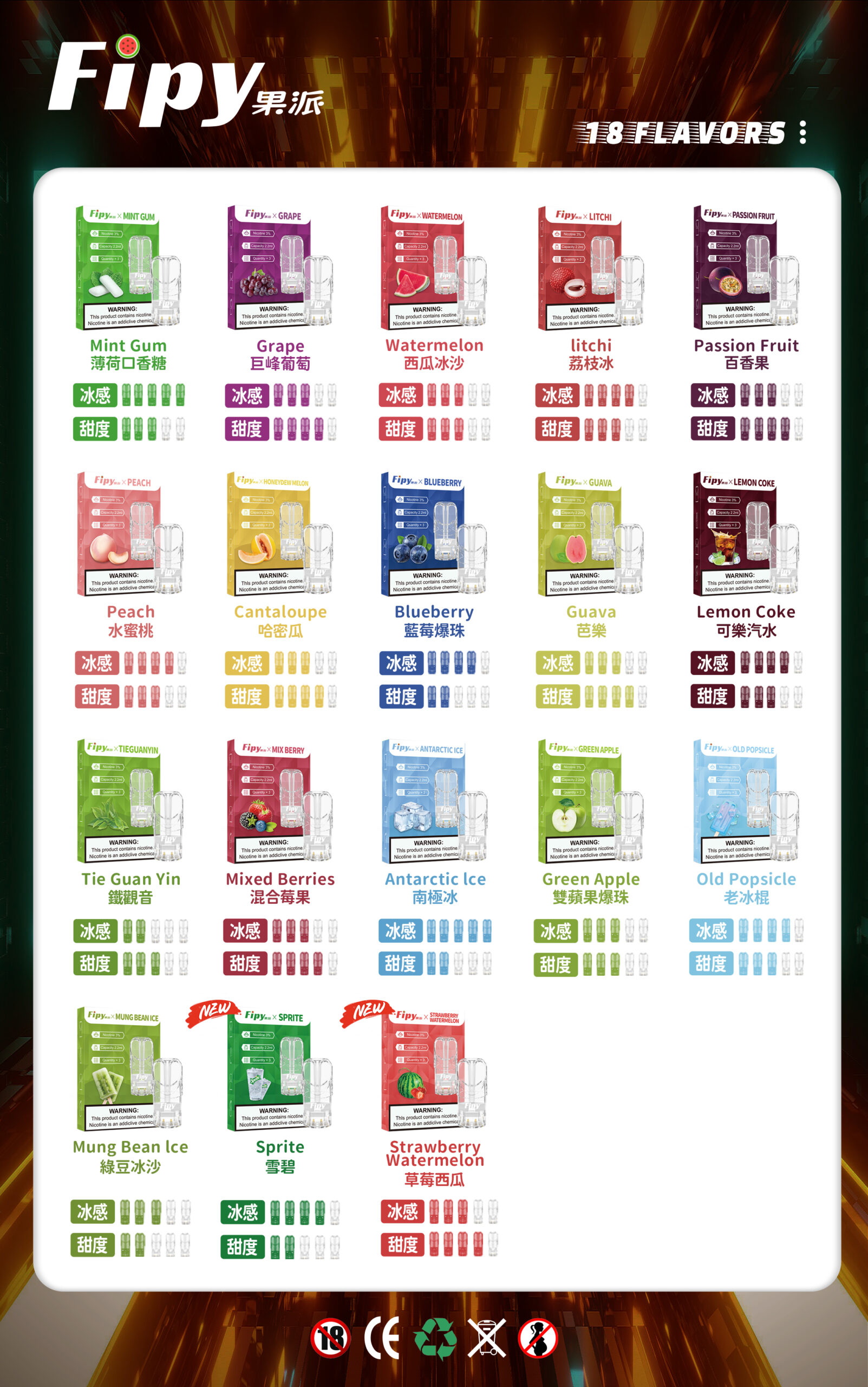 - 荔枝冰:甜美芳香的荔枝味,鮮爽多汁,帶來獨特的吸煙體驗。