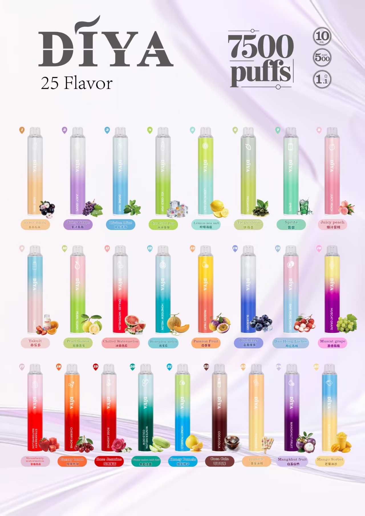 作為一次性裝置,它的優勢在於:打開包裝即可使用,不需加油、不需替換元件,也無需清潔 — 對於新手或追求方便的人來說,是快速、簡單的解決方案。DIYA 一次性電子煙/抛棄式 7500口 叮啞 ⚡現貨速發⚡