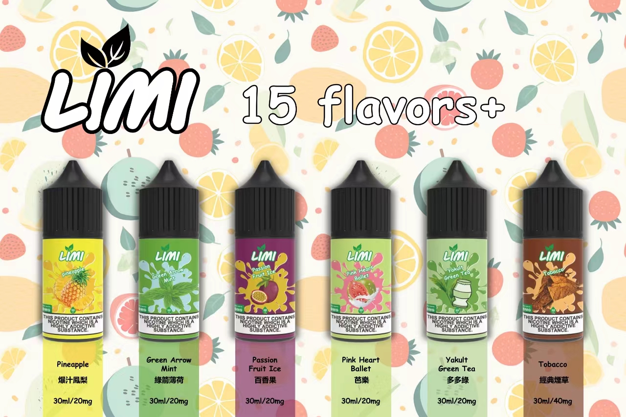 LIMI 煙油,來自台灣的進口小煙油,秉持著為您提供最優質的吸煙體驗,精心調配了15種口味,滿足各種喜好。無論您喜歡濃郁果香、清新茶味,還是經典煙草,LIMI 煙油都能帶給您一場前所未有的味覺盛宴。